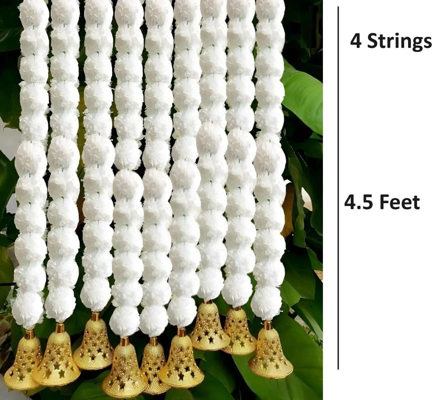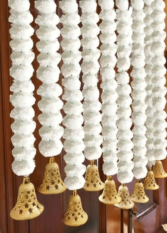 Artificial white marigold flower string garland for home decoration, Thoranam for entrance door design Thoranam for decoration, Toran for entrance door décor Bandarwal for temple, Door decoration items.