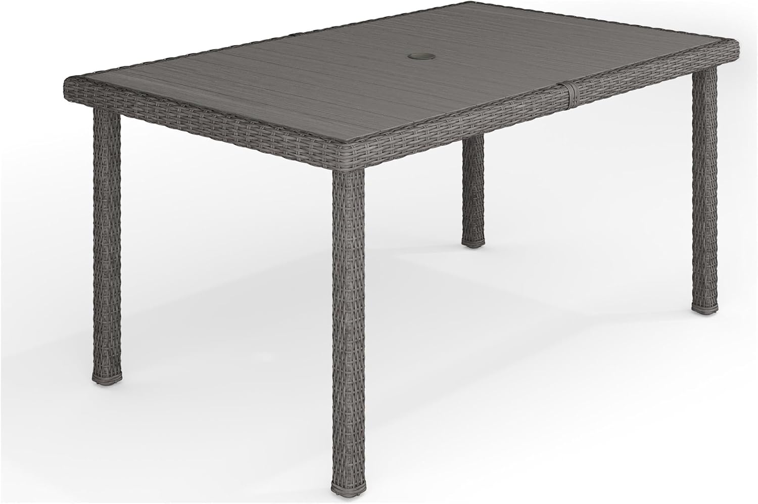 Refresh your patio space with the chic style of this Martha Stewart Bedford Patio Table. Sturdily built, this versatile patio table seats eight and is the ideal companion for reading al fresco, enjoying cocktails with friends, or simply relaxing. This wicker table boasts a faux wood top and adjustable floor glides for a level dining surface while you make the most of sunny days or starlit evenings. An umbrella hole makes it easy to complement this indoor-outdoor dining table with your preferred patio umbrella (not included). Part of our Bedford collection, this table pairs wonderfully with the coordinating pieces allowing you to craft a custom collection that fits your entertaining needs. Setup is simple with tools included and step-by-step instructions while upkeep is just as easy.