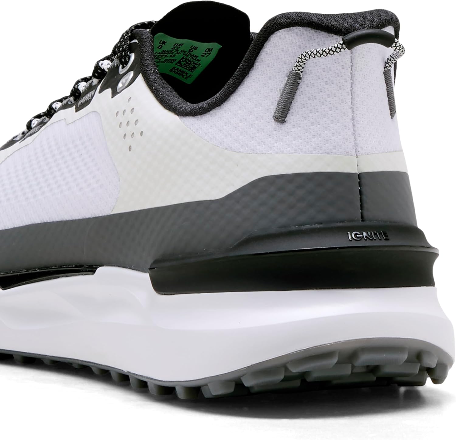 Step onto the course with confidence in the PUMA IGNITE Elevate X men’s golf shoes, designed for golfers who want performance, comfort, and style in one lightweight package. Built with advanced technology and a sleek spikeless design, these shoes deliver both on-course power and off-course versatility. The foundation of these spikeless golf shoes for men is Ignite foam, a revolutionary midsole that provides plush cushioning, responsive energy return, and superior step-in comfort. Stability is redefined through Floatplate Technology, an integrated midfoot shank that ensures torsional rigidity and balance during your swing. This innovation gives these mens golf shoes spikeless the control you need for powerful, consistent shots, while the Exoshell upper locks in the foot for a secure fit. Rain or shine, these golf shoes men spikeless keep you covered. The waterproof Exoshell upper delivers breathable comfort with a 1-year waterproof guarantee, making them a dependable choice for year-round play. Traction is never in question thanks to 100+ angular lugs that grip multiple surfaces. Perfect as golf sneakers men can wear from the course to casual settings, the flat-top design makes them versatile enough for everyday wear. Whether you’re searching for wide golf shoes for men, durable breathable golf shoes, or stylish white golf shoes men, the Ignite Elevate X blends modern style with game-changing performance. Engineered for comfort, durability, and control, they’re the ultimate upgrade for golfers of all skill levels. Take your game higher with the PUMA IGNITE Elevate X golf shoes for men, where innovation meets comfort, and every round feels effortless.